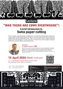Dr Kraemer is an art scholar, curator, and designer with a focus on Museum Studies and Media in Museums. He has lived in Hong Kong since 2014 and has worked at UMAG/HKU since 2022. His curated thematic exhibitions, Couplet Pair Rebus: The Principle of Cause and Effect in Art (2023/24), 8 × 8: Stories Series Systems in Mythology and Art (2025) as well as Tradition & Perfection. Paper Cuttings from China and Switzerland (2026), are structured as multi-layered, rich, and inspiring narratives.